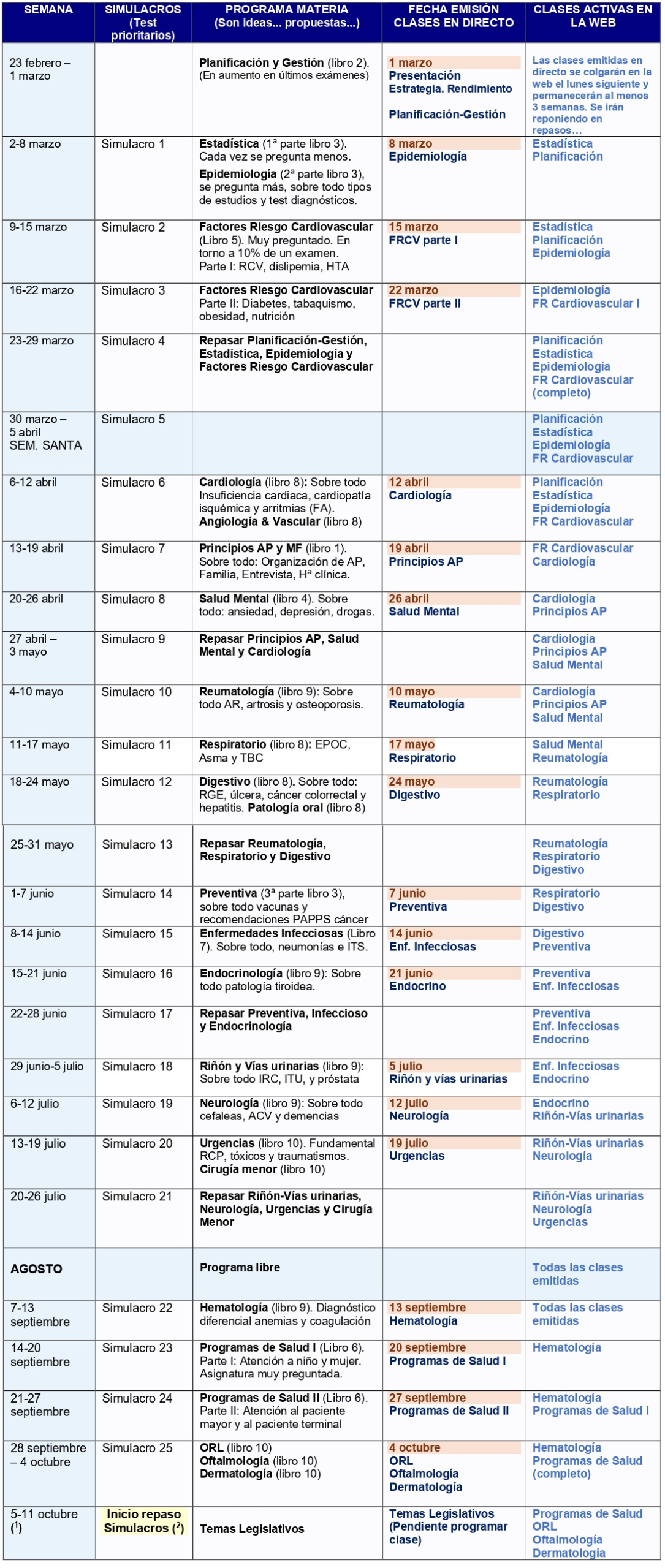 (1) No programamos más de momento, el curso se prolongará hasta la fecha del examen (o como máximo 31/05/2027).